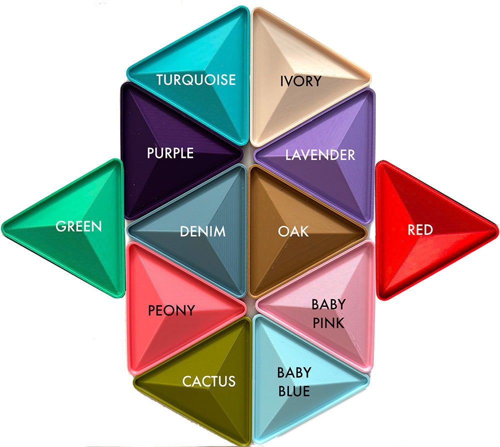 The box lid is peaked to match the angle of the triangular peyote stitch design that you can weave using your own design with the included design blanks. Or weave one of ten designs in our separate downloadable pattern booklet, which includes color recommendations for both Delicas and Aikos, and full bead counts for each of the ten designs. View our Youtube video showing how to stitch the angled triangle beaded insert. Choose from many different box colors; all are 3D printed to a finished size of 3” X 3.25” X 1.75” high including the beaded cover. This DIY product does not include beads or patterns.